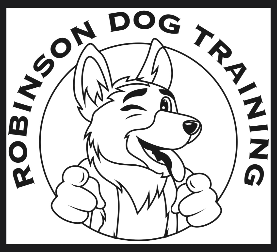 - Custom metal business logo sign featuring Robinson Dog Training, LLC black and white logo provided through email